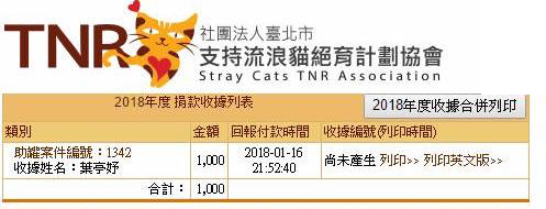 吃飯,是很重要的事 但對牠們來說是很困難的事 一起出錢幫牠們得到一頓溫飽吧! 你捐多少,我折多少 (單場折扣上限 NT$.1,000) Q. 為什麼要收據不直接收錢然後再自己提撥捐款? A. 因為我想要有人一起做這件事 社團法人臺北市支持流浪貓絕育計劃協會 助罐計劃 Facebook: 請支持流浪貓TNR計劃 ————————————–以下為捐款截圖————————————– 更多捐款收據… More ——————————以下為捐款流程示範—————————— 相關 Related TopicsTNR助罐計劃動物保護流浪動物流浪貓 Previous Article 婚禮紀錄 結婚大小事 [婚禮紀錄攝影] 一眼瞬間。One Moment 2017-06-13GarField View Post Next Article 婚禮紀錄 結婚大小事 [婚禮紀錄攝影] 那些,你不知道的事 Something you don’t know 2017-09-07GarField View Post 發表迴響取消回覆